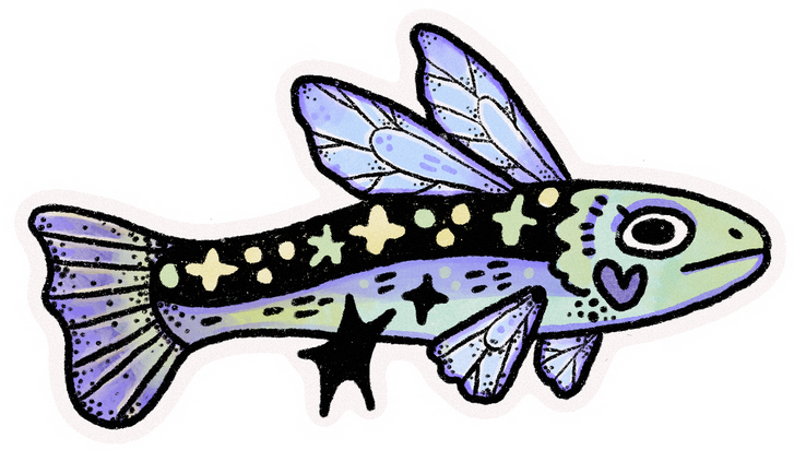 I'm a self taught, neuro queer, independent artist, handpoke tattooer, music maker, creative twitch streamer n' lil youtube'r!♡ I've spent lots of my life with a backpack full of art material, making shelter in my art journal, notebook & sketchbooks.drawing, writing & playing music in the mornin with a warm cup o' coffee is one of my fav tings! ♡✦ my art, tattoos & wild hearty craftings are centred around m’warm adoration for the natural world, as well as embracing the little tings in life, ethereal realms, creatures & anything fae- like, folky, witchy, story book-esk, back-woods, old-timey!some tings I love are: camping, swimming, going on walks, collecting cute sh*t, trinkets, oddities, making zines, printmaking, hanging out with loved ones, breakfast!!! the power of friendship, cartoons, playing video games (zelda, my beloved) horror movies, being in the woods / prairies / country, writing poetry, delving into worlds of fantasy, fairy's, storybooks, divination! anything & everything magical! ♡creativity, art & tattooing are my hero's